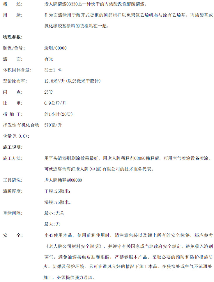 老人牌清漆03330