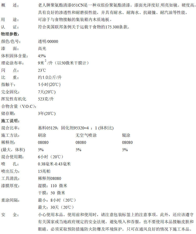 老人牌聚氨酯清漆051CN