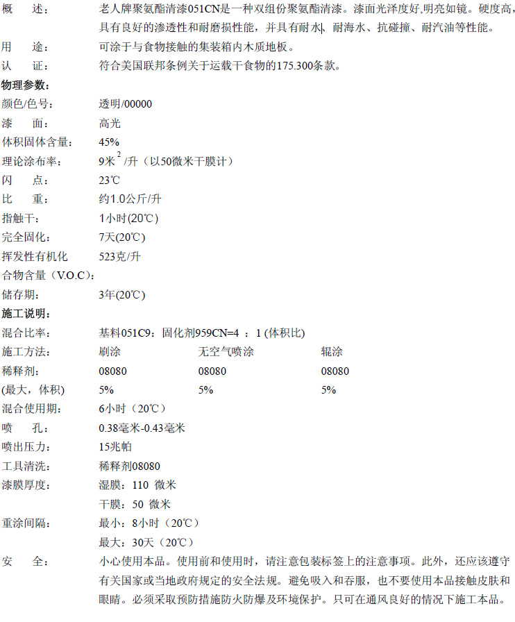 老人牌聚氨酯清漆051CN