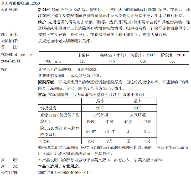 老人牌醇酸底漆12050