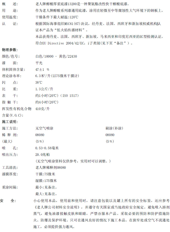 老人牌醇酸厚浆底漆13200