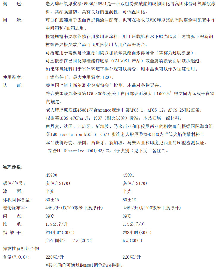 老人牌环氧厚浆漆45880